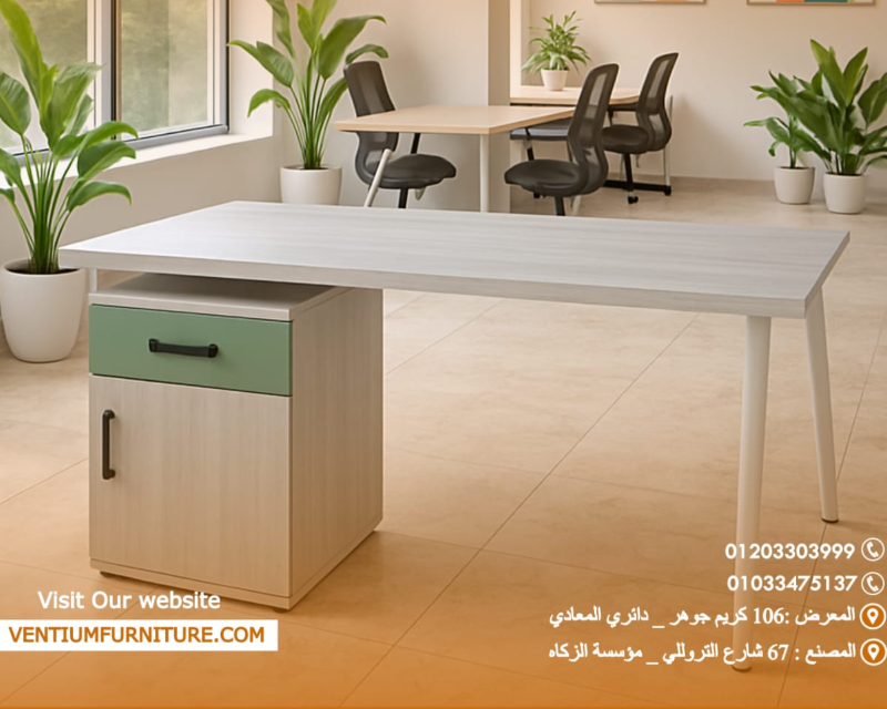 An employee desk with a practical and elegant design, combining durability and functionality. Featur...